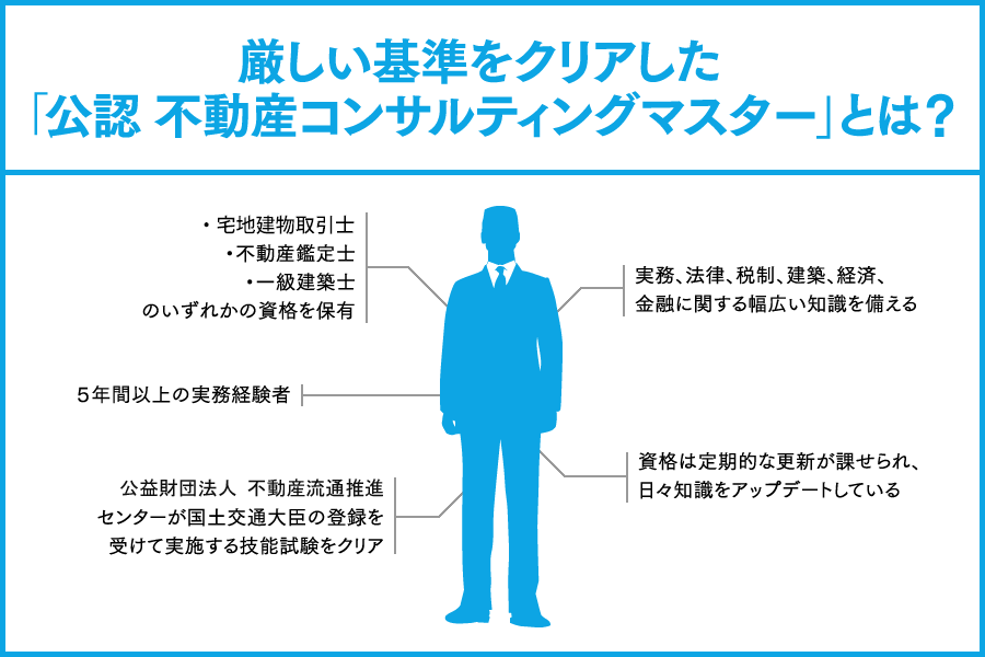 ※公認 不動産コンサルティングマスターは、宅地建物取引士、不動産鑑定士、一級建築士いずれかの国家資格保持者です。